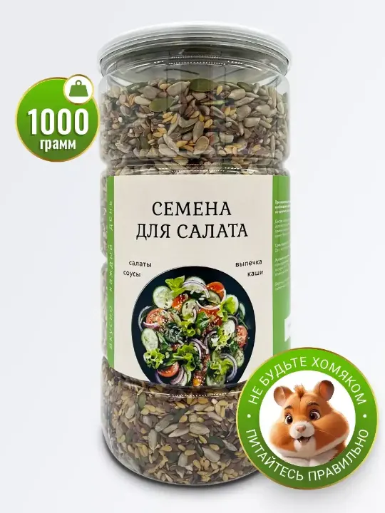 для салата Смесь семян Смесь содержит следующие семена : тыквы, льна(золотого и коричневого), подсолнечника( очищенные), кунжут белый, кунжут черный, чиа Заказать